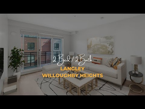 Experience elevated living at Hudson & Singer in the heart of Willoughby Heights. This corner residence offers 2 bedrooms and 2 bathrooms in a thoughtfully designed layout that separates the bedrooms for maximum privacy, enhanced by expansive windows that flood the home with natural light. The chef-inspired kitchen showcases quartz countertops, designer cabinetry, and premium stainless steel appliances. Two oversized decks invite you to take in the sweeping mountain views, creating the perfect extension of your living space. Recently refreshed with new paint, this home includes 2 secured parking stalls and a storage locker. Perfectly positioned just steps from Richard Bulpitt Elementary and the vibrant Willoughby Town Centre, this home blends luxury, lifestyle, and convenience.